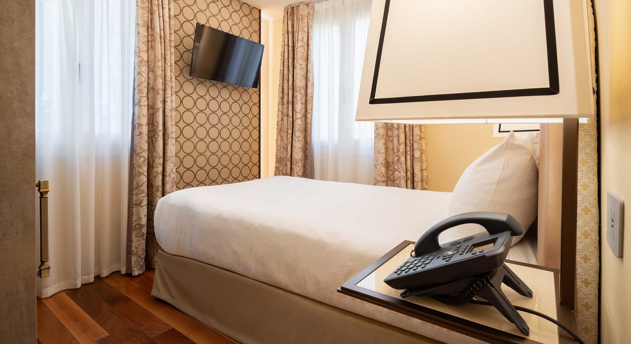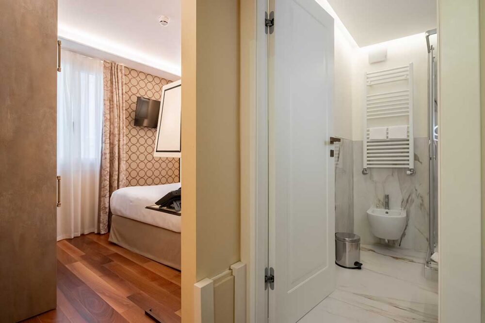 Our Classic rooms have been designed to create a relaxing setting for your weekend or long stay in Venice, with a comfortable double bed and modern bathrooms.